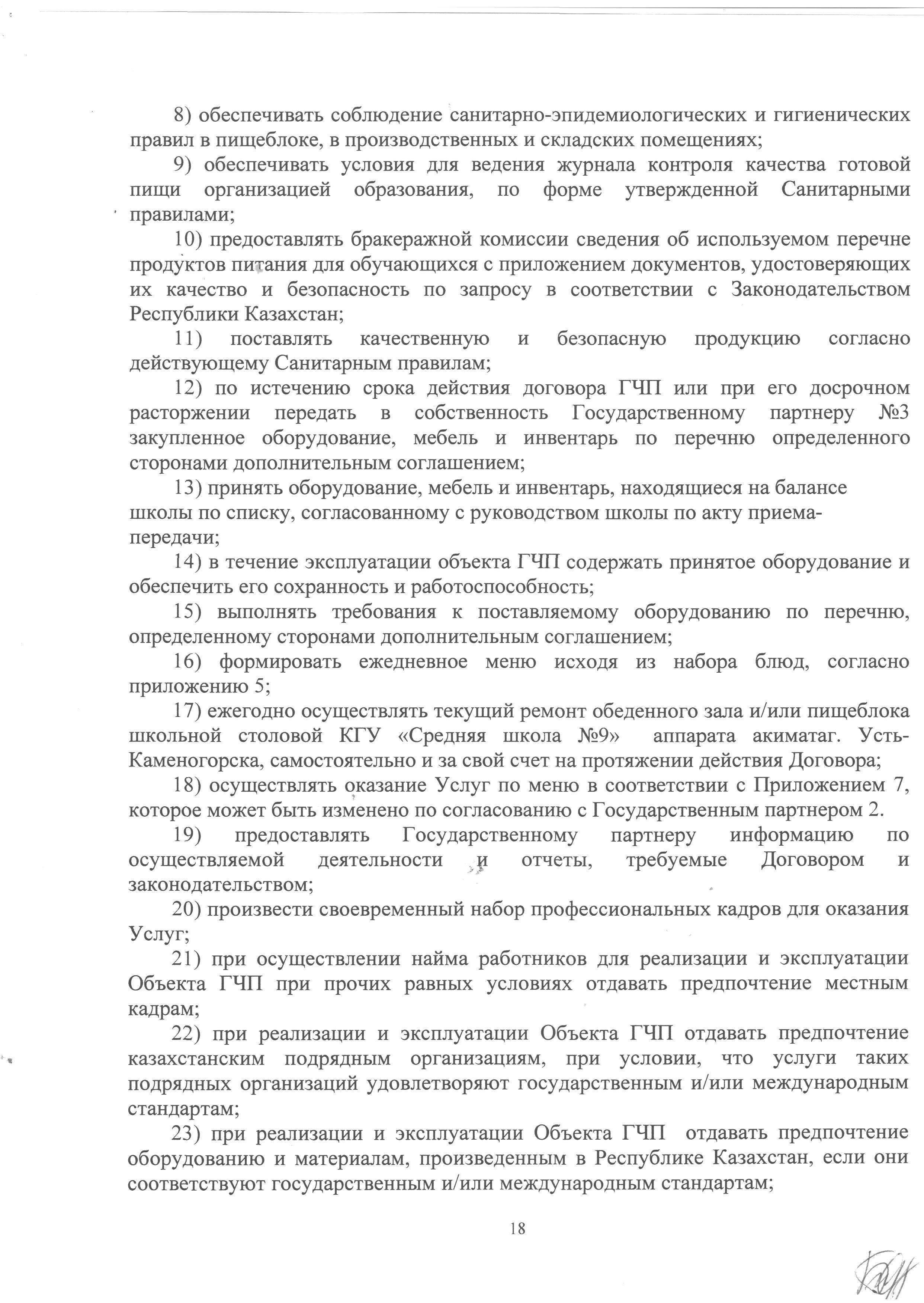» Договор по питанию